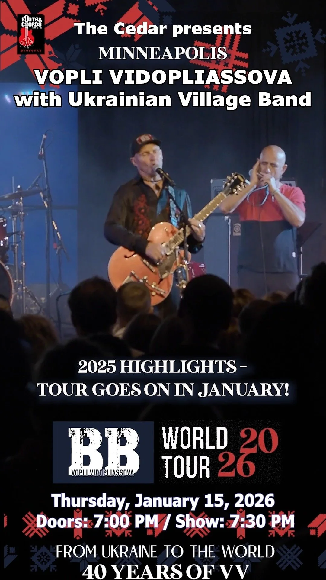 After their packed 2025 Minneapolis debut, Ukraine’s legendary Vopli Vidopliassova return on January 15, 2026 for an unforgettable Malanka Night at The Cedar Cultural Center!