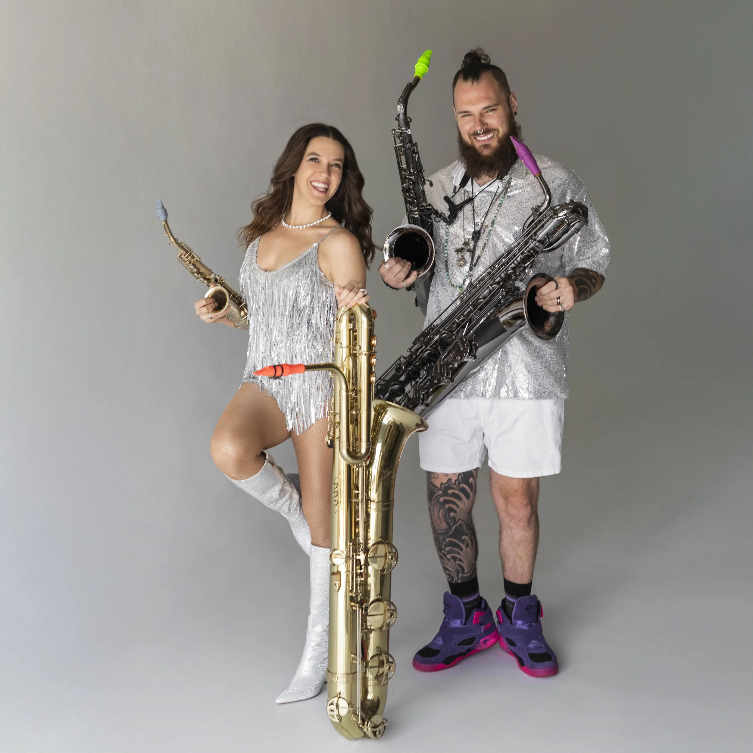 Both members sing, DJ, and play keys, while Zach adds a fiery layer with tenor, baritone, and bass saxophones. Their debut album, NOW (2025), is gaining national recognition for its joyful, genre-defying sound.