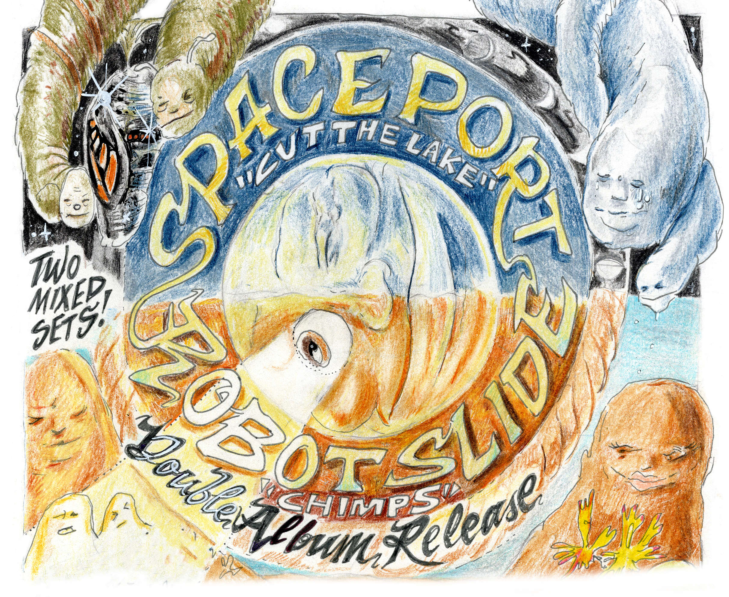Local family bands Spaceport and Robot Slide come together to co-headline an extra-special collaborative show celebrating the release of their sophomore albums Cut the Lake and CHIMPS. They’ll be playing musical chairs on stage with two mixed sets, collaborating and sharing members to bring a unique mix of weird pop and indie rock to The Cedar stage.