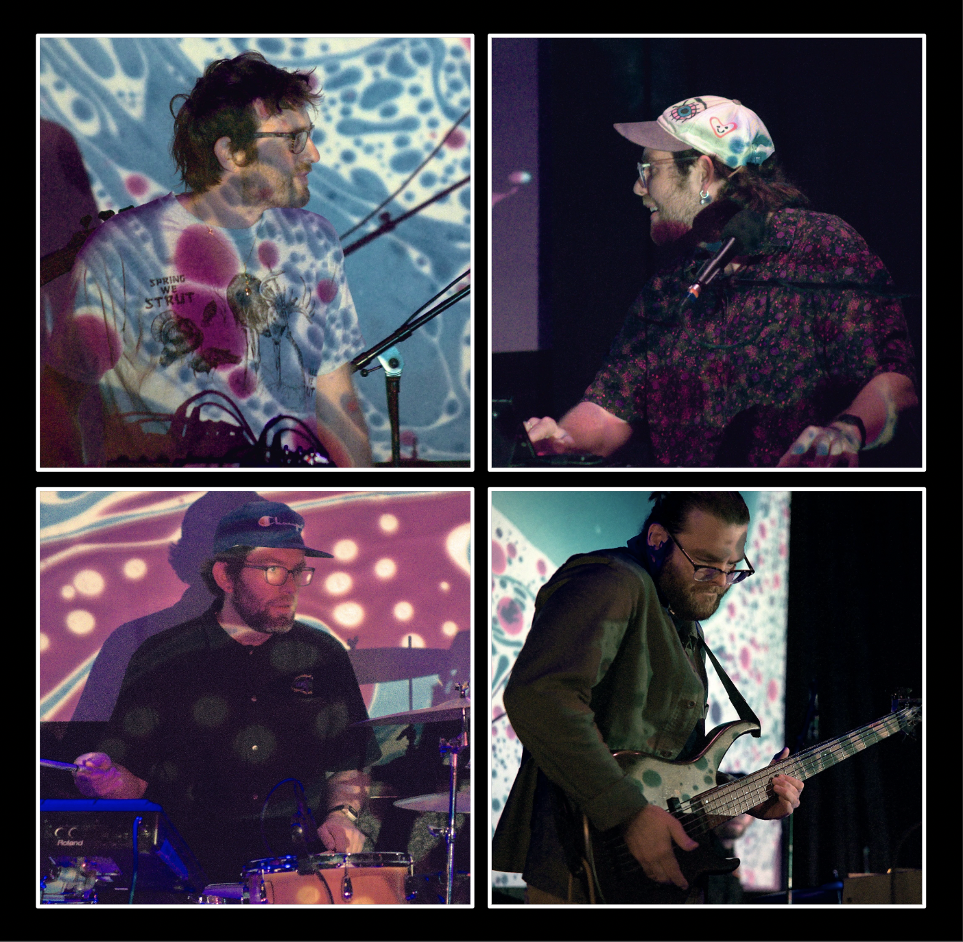 Minneapolis based Robot Slide is a family band–Brothers Matt, Jake, and Todd Olson and their good friend Liam Moore have been playing music together in different combinations for the past 15 years. Using an array of digital production tools, samplers, and acoustic instruments, Robot Slide laces the textural, world-building elements of electronic music with the sensitivity and beautiful imperfections that arise in live band performance, resulting in complex, interweaving tapestries of digital and organic sound. Since their 2022 release EXTEND, the group has focused on making more space for each other; to approach their relationships and the music with patience, vulnerability, and acceptance. They encouraged each other to simplify, to unearth the ways in which they can play as one ‘organism’, giving time for the songs to evolve and find their final forms over the span of several years. Self-recorded and produced by the band in their DIY garage studio, their sophomore LP CHIMPS evokes a dreamstate, the scenery constantly changing, shifting subtly from one unexpected moment to the next.